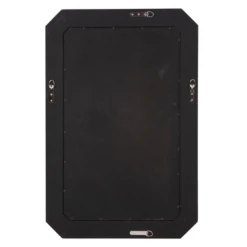 Showcasing a beveled mirror frame with angled corners and classic white trim, this elongated octagonal mirror enriches any space with elegance. D-rings are affixed to the back of the mirror so it is ready to hang either a vertical or horizontal orientation.