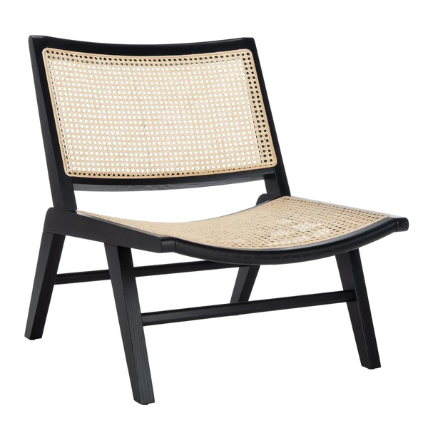 Effortlessly blending comfort and modern style, this accent chair pairs rattan caning with a beautifully contoured ash wood frame in black.