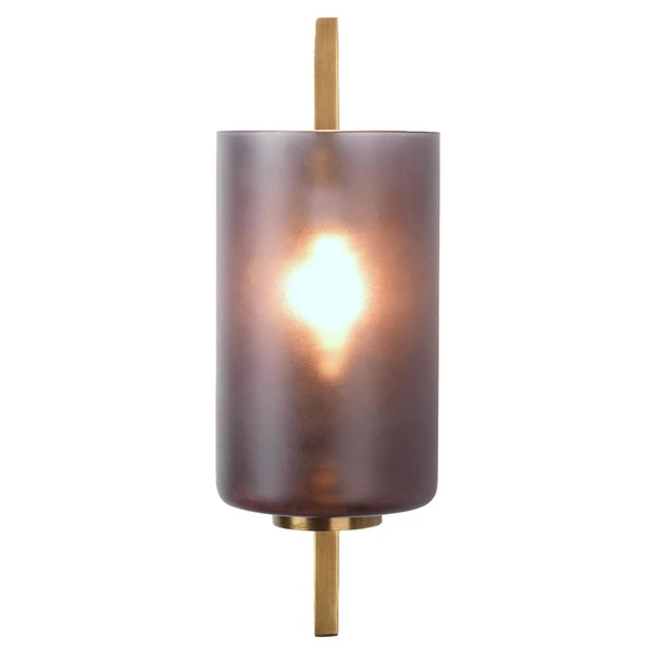 A wall sconce with an architectural profile and glass shade. The contrast of the smooth frosted glass and the metal along with the graphic shape creates a great modern sconce with craftsman influence.