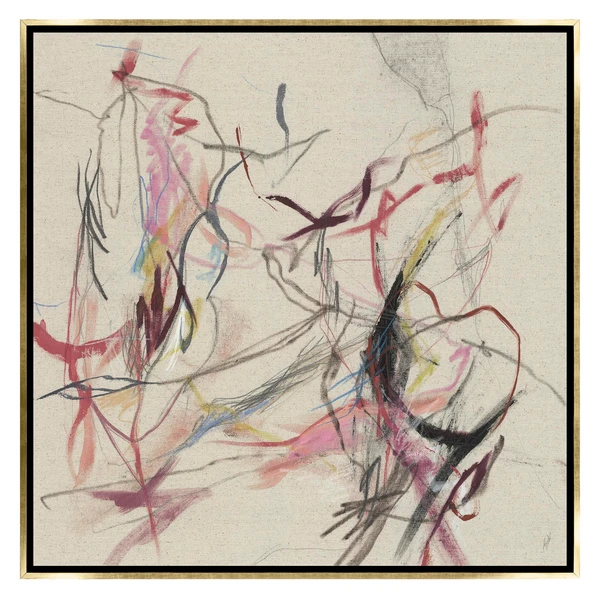 This impressive abstraction from artist Kelly OâNeal adds a modern note and hint of color to your wall. Printed on canvas, this piece is displayed in a gold floater frame.