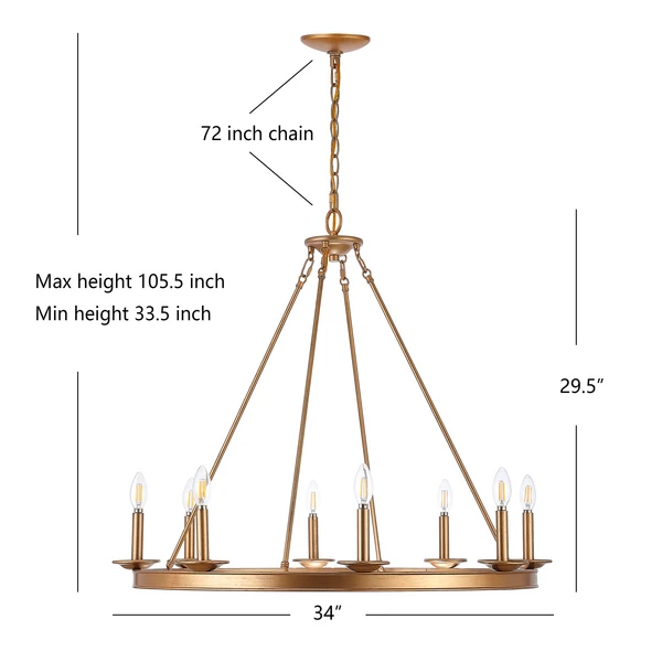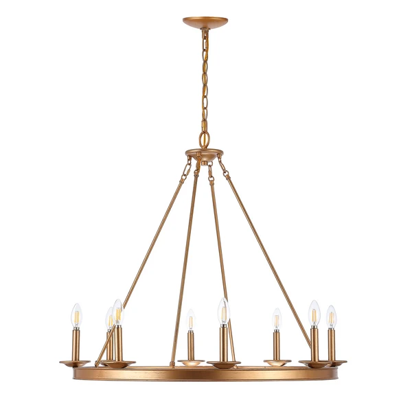 Designed for the contemporary tastemaker, this 8 light chandelier is an investment in stylish living. Its minimalist metal circle is finished in rich gold so any room has a touch of shining industrial chic charm.