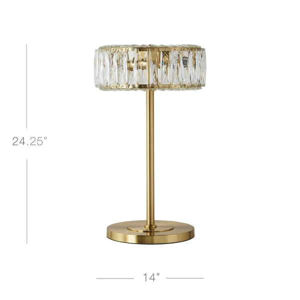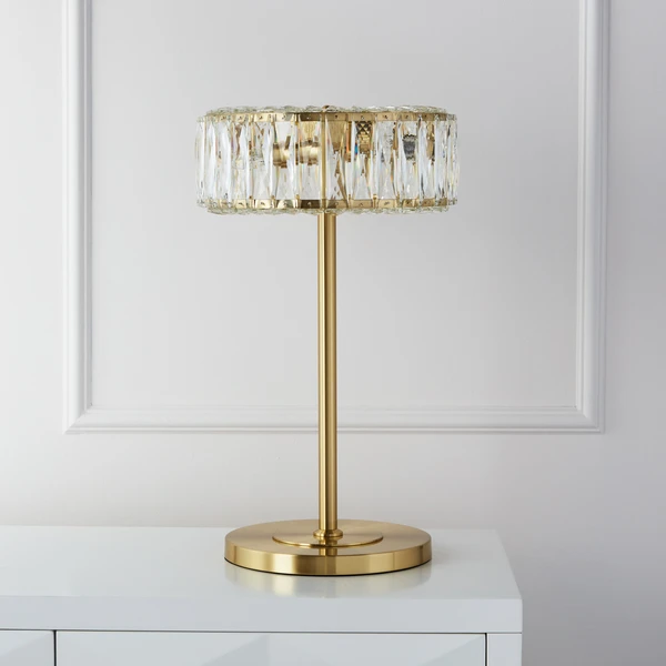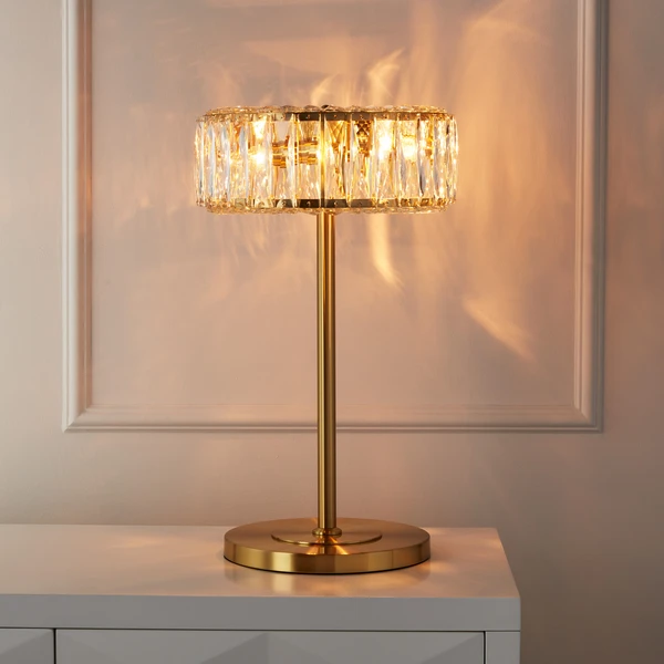 Elegantly simple and modern, the Gleam Lighting Collection is a solution fit for any space. Finished in soft gold, the table lamp is embellished with faceted crystals for a glamorous touch.