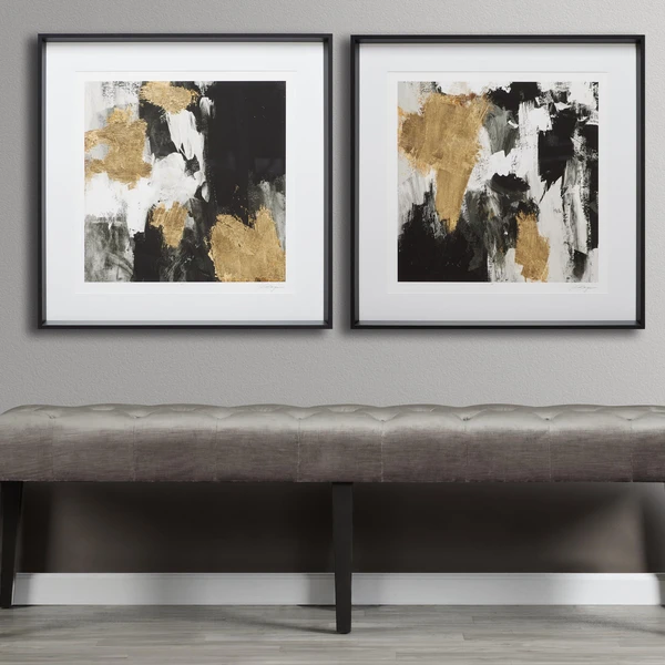 This limited-edition abstraction from artist Victoria Barnes brings a captivating modern note to your wall. Printed on archival paper with hand-applied embellishments, this piece is matted and displayed in a black frame.