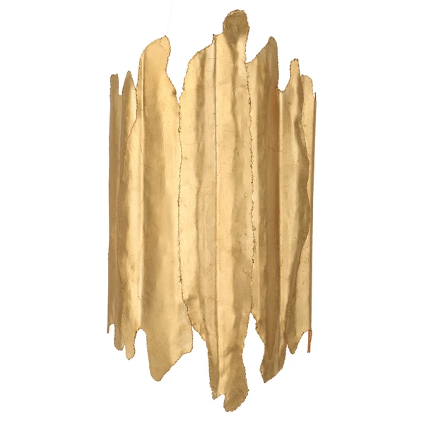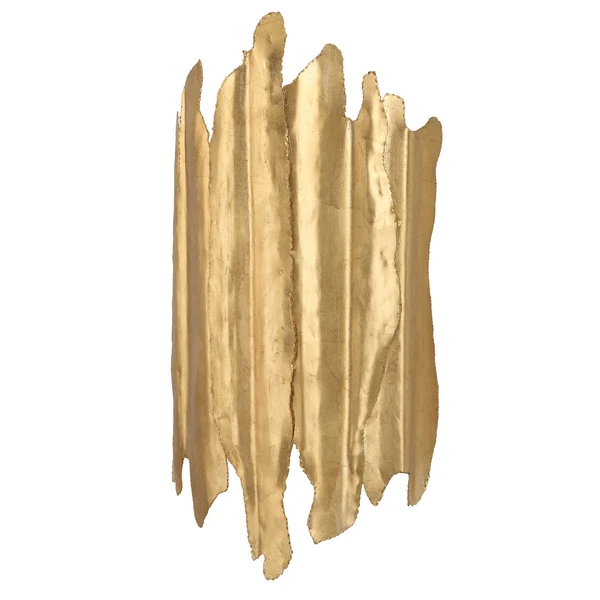 Industrial metal segment sheets welded with rough cut edges juxtaposed with a gold leaf finish give an elegant look to this chic sconce.