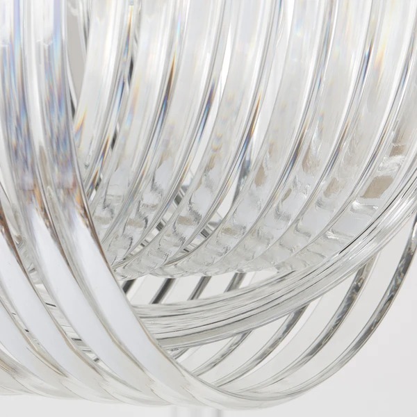 Cast warm ambient light throughout any space with our Laval six-light chandelier, featuring layers of crystal-clear curved glass in a deco-inspired frame.