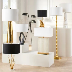 Guests will have no trouble spotting your style! Supported by a clear acrylic base, this table lamp lends a whimsical, exotic touch to any space with its sculptural leopard design and rich gold finish. A coordinating finial and black silk shade complete the luxe look.