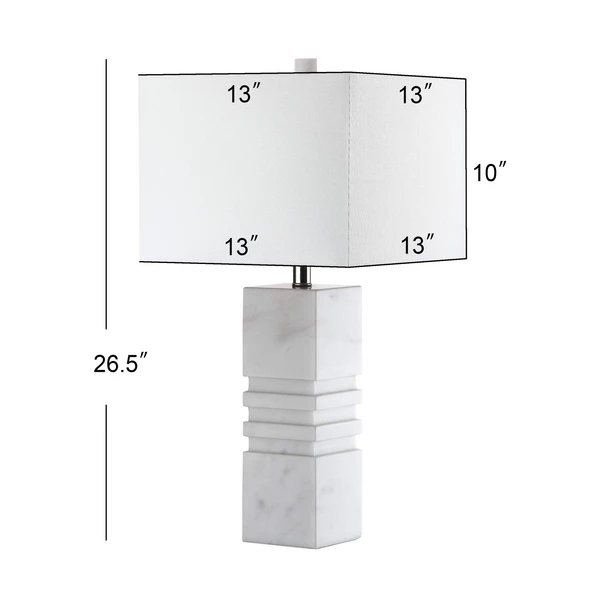 Inspired by the dramatic angles of modern sculpture, this white marble table lamp is a design must. Its clean lines and crisp off-white shade bring timeless style to room.