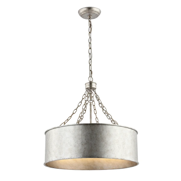 Give your dĂ©cor a fashion-forward shine with this fabulous drum chandelier. Showcasing a sleek, industrial-chic silhouette in a shimmering silver finish, designers love it’s chain-link details.