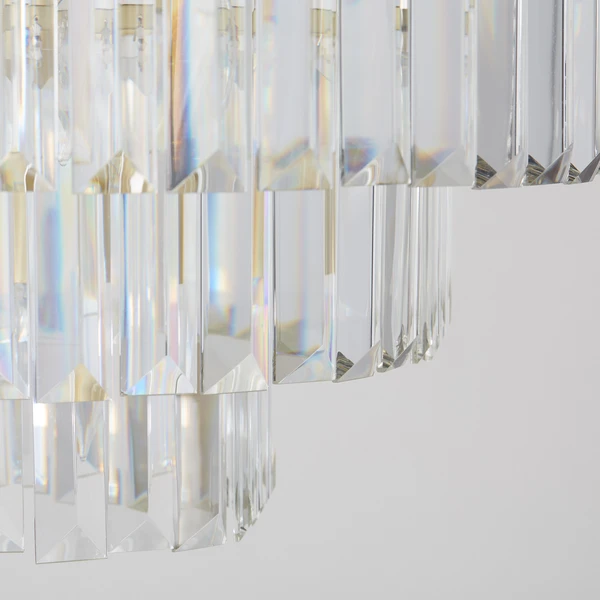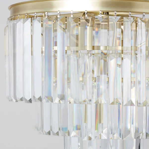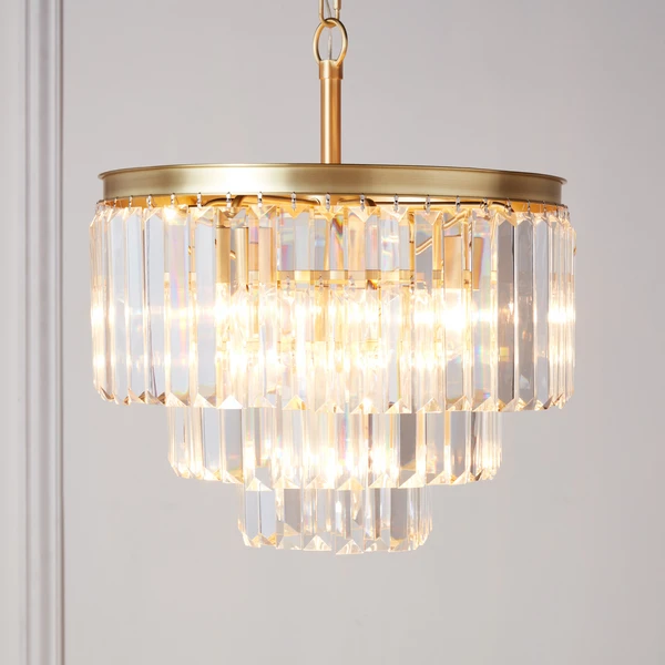 With its metallic finish, our Luxe Lighting Collection provides an elegant solution for coordinating a space. The Chandelier is embellished with three tiers of faceted crystals for overhead glamour.