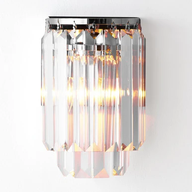 Finished in polished nickel, this sconce is embellished with faceted crystals for a glamorous touch.