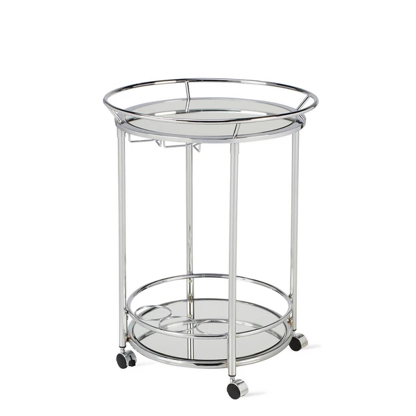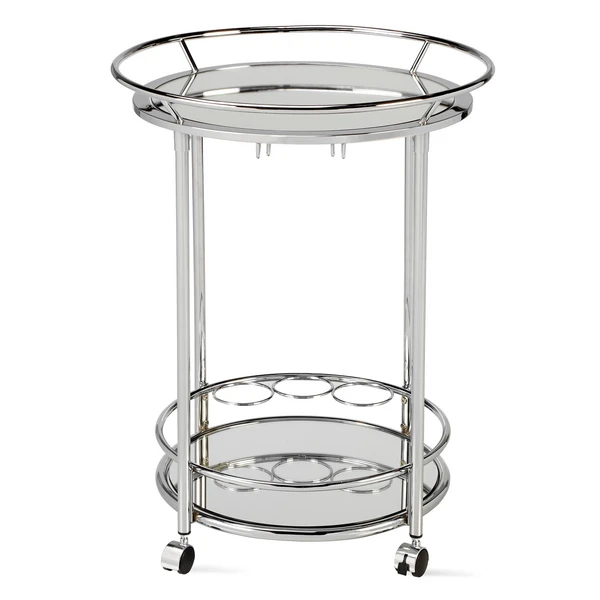 Entertain guests with our modestly-sized Manhattan Bar Cart, and embrace a portable fixture on which to arrange your libations. Featuring a mirrored tray top and bottom set upon casters, this cart has been finished in chrome, providing a lustrous sheen. The lower tray offers a place for three bottles to be held securely as you wheel your drinks to the chosen destination.