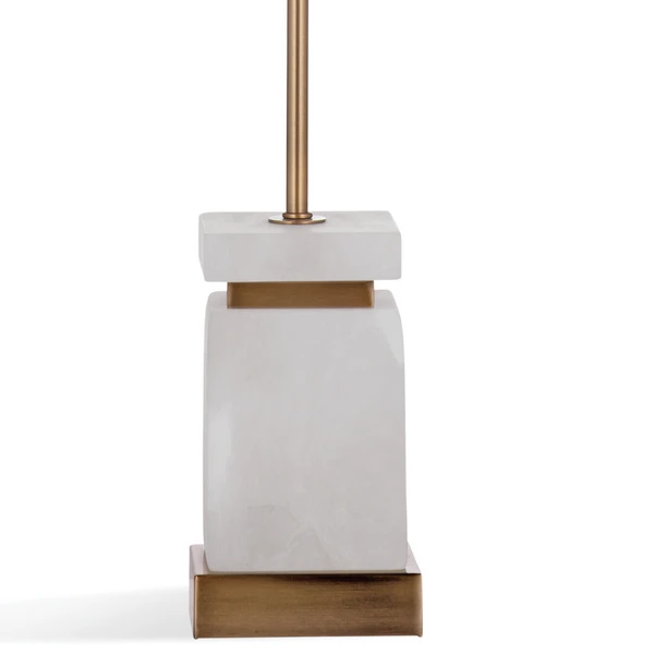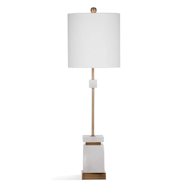 The Marcus Table Lamp is crafted of brass and marble with a drum shade.