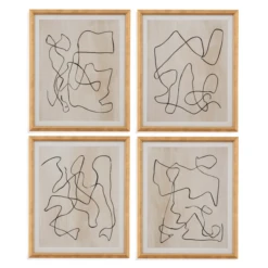 Our Maze art series features abstract ink scribbles on a cream background with white border and a simple natural wood frame.