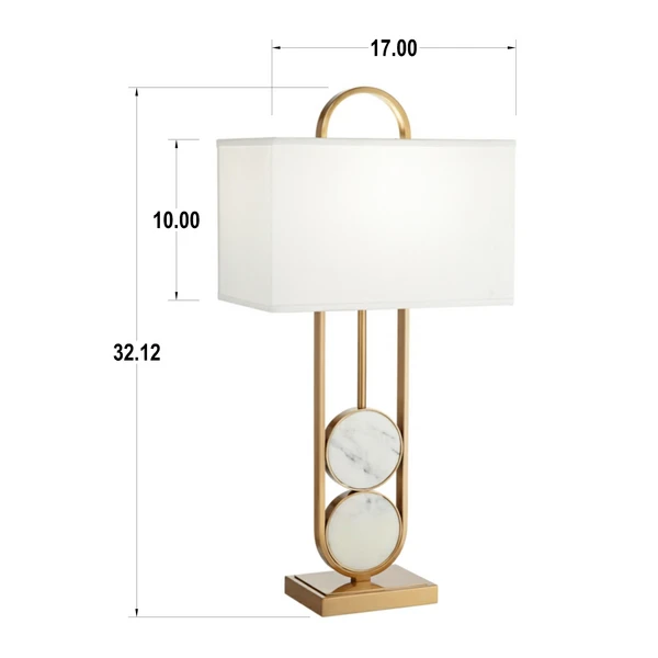 Circles and curves flow together in elegant harmony to give this metal and marble table lamp a look of artful sophistication. A charming accent to mid-century inspired decor, this piece blends the opulence of real marble with a warm gold finish metal frame. A rectangular shantung shade tops it off for a tasteful touch of character.