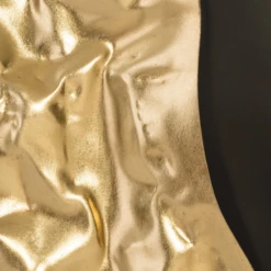 A stylish focal point for any room, this wall mirror flaunts a round silhouette and otherworldly composite frame with a fluted, asymmetrical design and sleek black-and-gold-leaf finish.