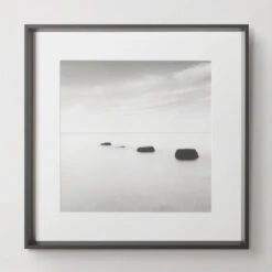 This print from photographer Hakan Strand beautifully captures a beach in black and white. Set off with a white mat, this piece is displayed under glass in a black frame.