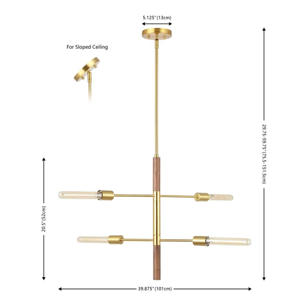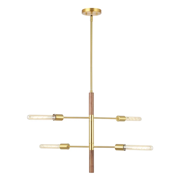 Elevate your home with our ultra-modern and luxe Myla extendable pendant. The sleek and clean-lined arrangement of the ceiling light updates your home with refined minimalism. It combines a gleaming brass finish with walnut wood to stand out as a mixed material showstopper. Completed with sleek arms and a slim clear glass bulb, the pendant serves as an elevated centerpiece for any room. It includes 4 lights to illuminate your entryway, kitchen, dining area, or lounge.