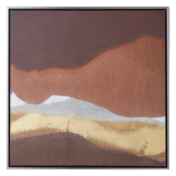 Dawn Sweitzer presents an interpretation of the desert with an air of simplicity and an element of truth. Neutral earth tones dominate this piece which is created with giclee on canvas. Hand-applied gold gilding and an image brush gel finish complete the painting. Set in a silver floater frame, this is 1 of a series of 2.