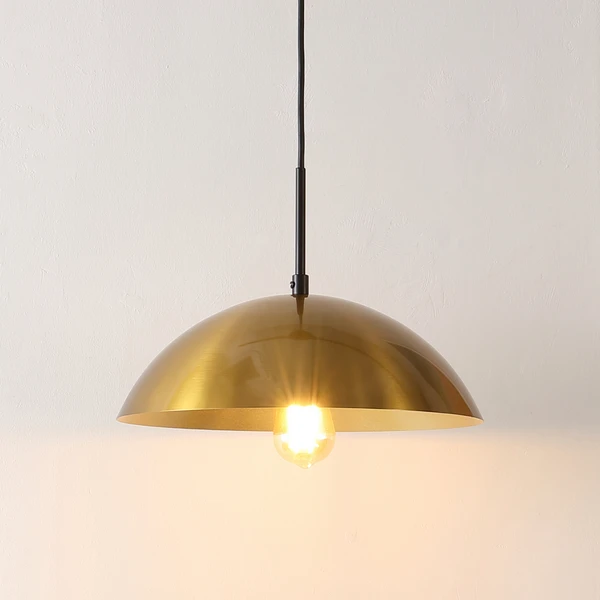 Lend a rich and timeless tone to your interior space with our stylish Orla pendant light. A striking and refined dome-shape pendant suspends to vouch for a timeless industrial appeal. A gleaming brass finish adds tonal warmth to our charming and minimalistic pendant light. It emits a warm and pleasant glow to illuminate your kitchen island, dining table, or conversation area.