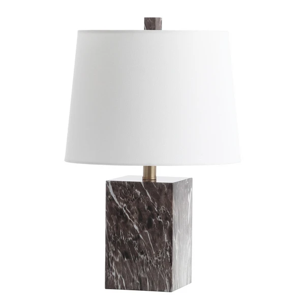 Bold yet refined, this table lamp pairs a cubic marble base with brass-finished accents. A crisp cotton shade completes the design.