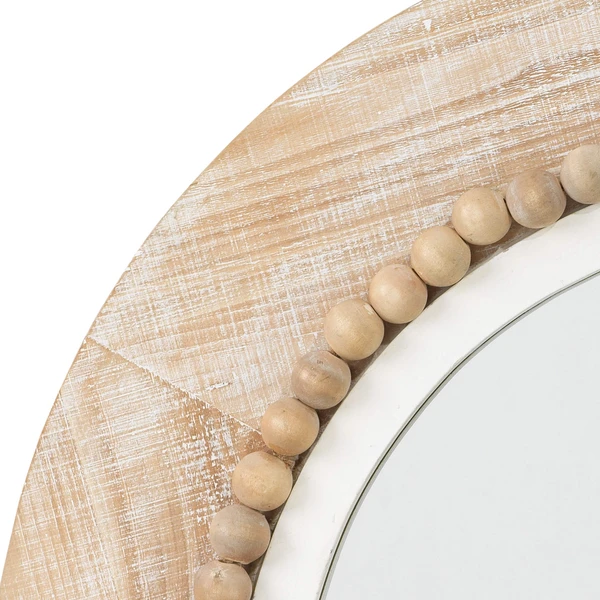 Our hand carved Petra Mirror is ornamented with dozens of small wood balls. The sweet yet sophisticated spherical accents are finished naturally, as is the frame of the mirror, to highlight the natural grain of the wood and incorporate it into the design.