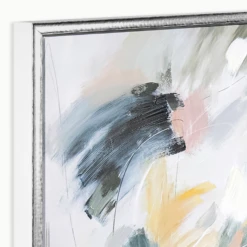 Plumage is a gallery wrapped canvas with hand-applied pallet knife embellishment and set in a white with hammered silver (2 tone) floater frame.