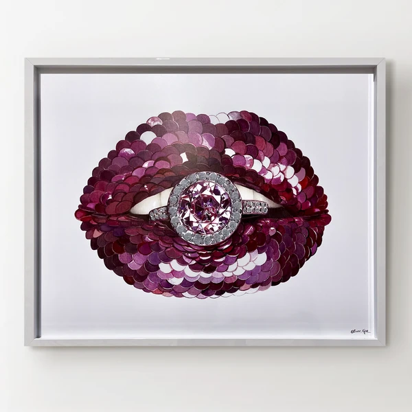 Get set to dance the night away with Z Gallerie’s first ever collab with Oliver Gal! Inspired by the fun, glamour, and inclusivity of the disco era, the collection features museum-quality pieces, many of which boast embellishments added by hand. Regal and ritzy, purple lips and bling are the focus of this piece. This glossy art print features a silver glittered ring bezel mounted within a high gloss white wood shadowbox frame. Available in two sizes.