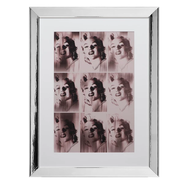 This rose-tinted pop-art work is printed on paper and beautifully set off with a chrome frame.