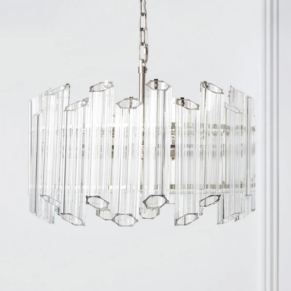 Our Ryder Chandelier is a light-catching spectacle and glam centerpiece for any room or conversation. Off-set hexagonal glass tubes adorn a circular iron frame to create a multi-faceted glow that’s sure to illuminate (six bulbs and a diffuser help with that, too).