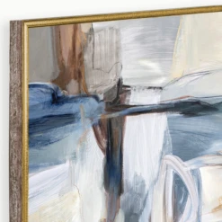Stormy is a gallery wrapped canvas with hand-applied pallet knife embellishment and set in a warm wood tone with hammered gold (2 tone) floater frame.