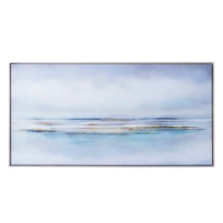 Looking for peace and quiet? Create your calm with artwork that helps you find it. Sunlight Mist will promote tranquility in any space. Set in a natural wood frame, this piece is produced using giclee on canvas with a hand-applied encaustic gel finish applied horizontally.