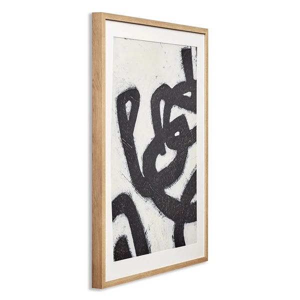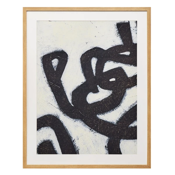 Bold in black and white, this abstraction from artist June Erica Vess is ideal for bringing a modern note to your wall. Printed on paper, this piece is matted and displayed in a natural wood frame.
