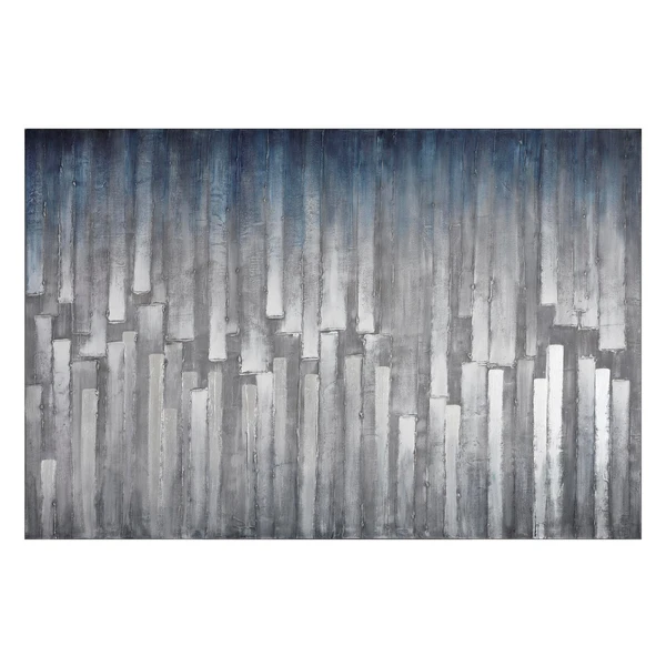 Painted on gallery-wrapped canvas, this original work from artist Beverly Fuller enlivens any wall with its linear, abstract composition and shimmering silver finish.