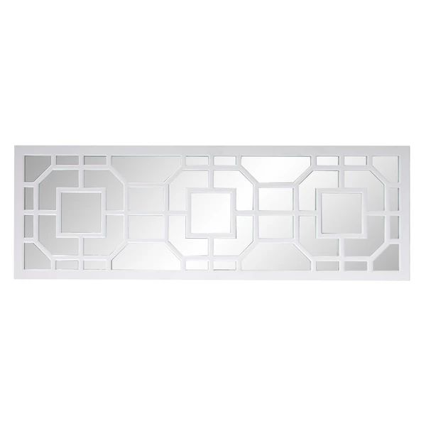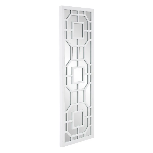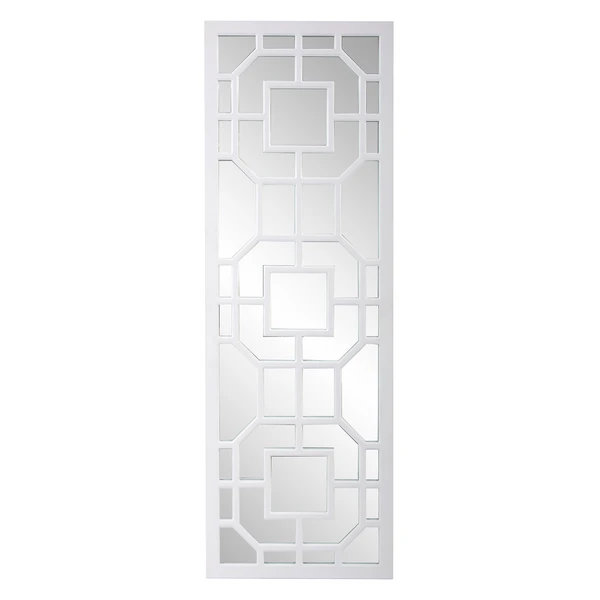 Featuring an intricately detailed lattice overlay design, this wall mirror exudes classic English style. A matte white finish tops off the look.