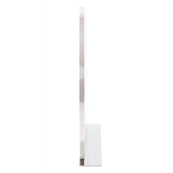 Combining sleek design with functionality, this mirror features a modern polished stainless steel frame with a built-in shelf. D-rings are affixed to the back of the mirror and ready to hang.