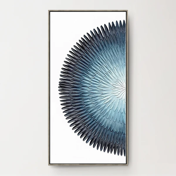 Forget your troubles, come on get happy. This hand-painted canvas makes the blues beautiful. Set in a silver floater frame, it can be hung vertically or horizontally. Complete the look with Troubles II.