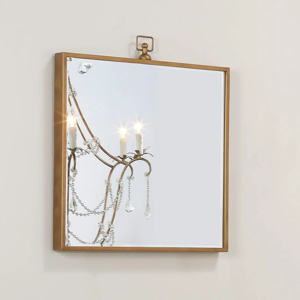 A modern take on an antique-inspired silhouette, this mirror will bring charm to a variety of décor styles. Featuring glass surrounded by a slim metal frame hand-finished in antique brass. Mounted above a vanity, sideboard or dresser, its squared shape will open-up your view and make your space feel bigger.