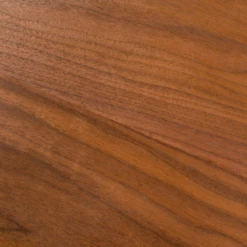 Designed with a walnut veneer finish and sculptural silhouette, this dining table lends cool, contemporary style to the dining room. Assembly required.