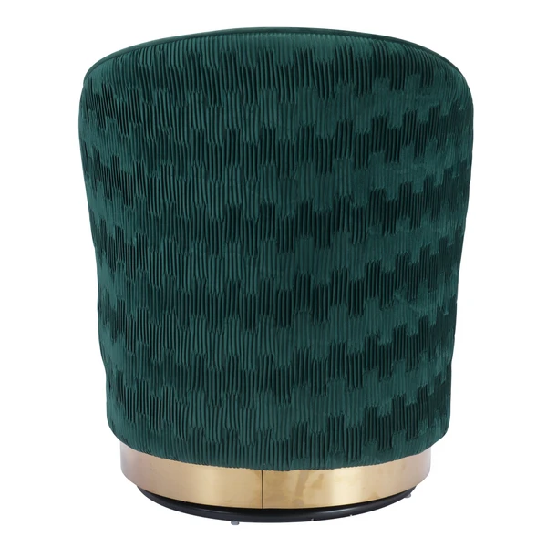 With its sophisticated patterned pleating, the Verity Chair has a maximalist design that fits in any space, deco, modern, or even boho chic. This chair is wrapped in velvet with a gold capped swivel base. It fits in any living room, bedroom, or hotel lobby.