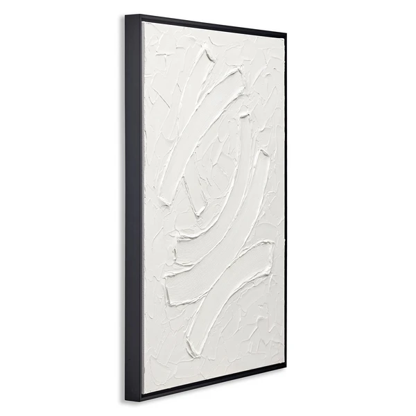 Bold brushstrokes in bright white add an incredible element of texture to this original work by artist Beverly Fuller. Painted on canvas, this piece is displayed in a black floater frame.