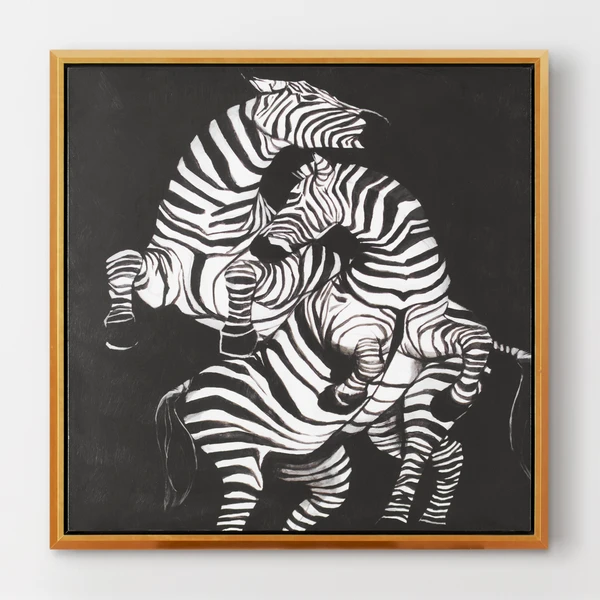Featuring a lively composition, this black-and-white work from artist Jacob Lincoln is ideal for adding a bold, spirited note to your wall. Printed on canvas with an image brush gel finish for added texture, this piece is displayed in a gold floater frame.