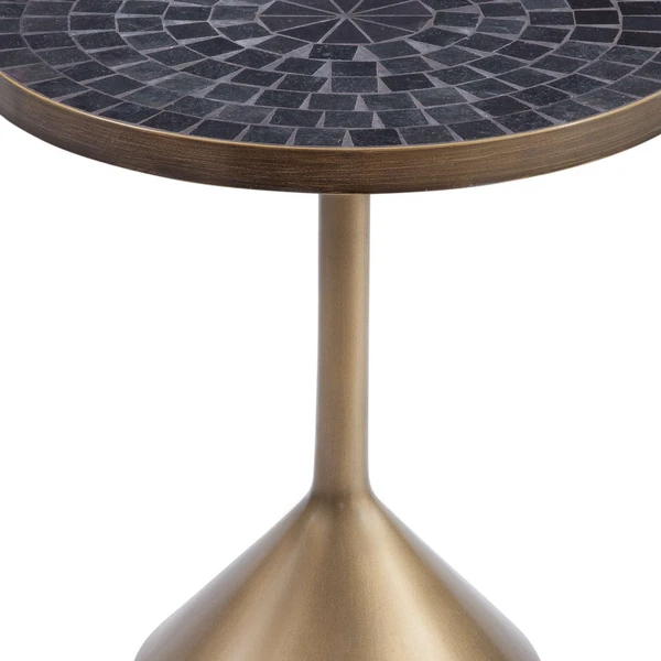 The Zayne Accent Table features a black marble round top on a flared brass base.